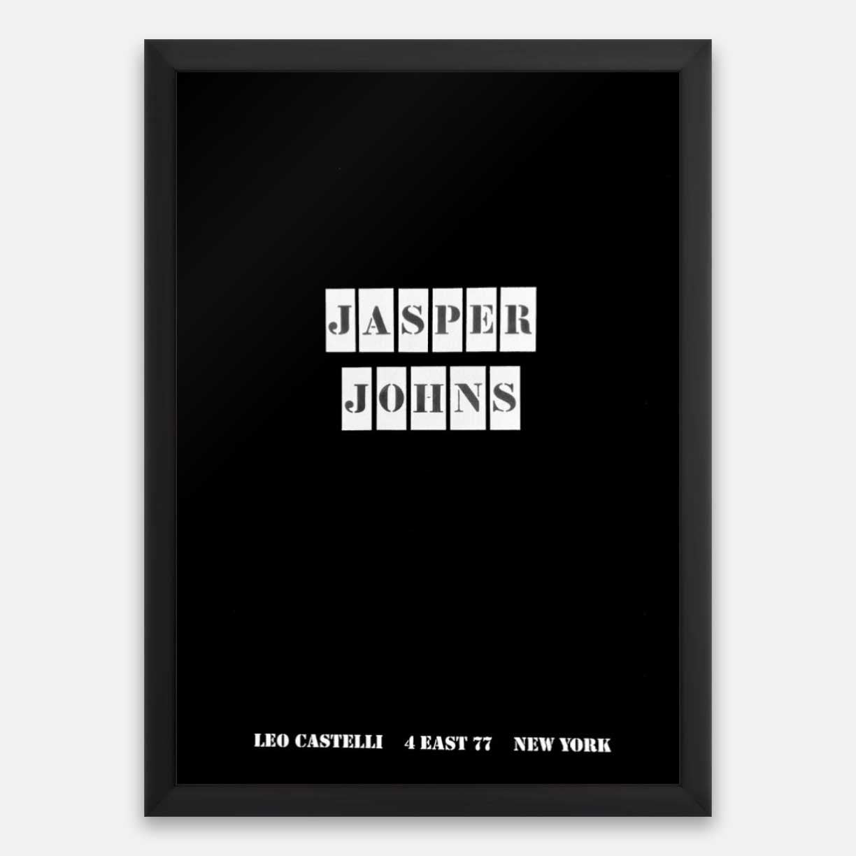 Vintage art show advertisement for Jasper Johns at Leo Castelli Gallery in New York City. The artwork is newly framed in matte black or bright silver gallery frame.