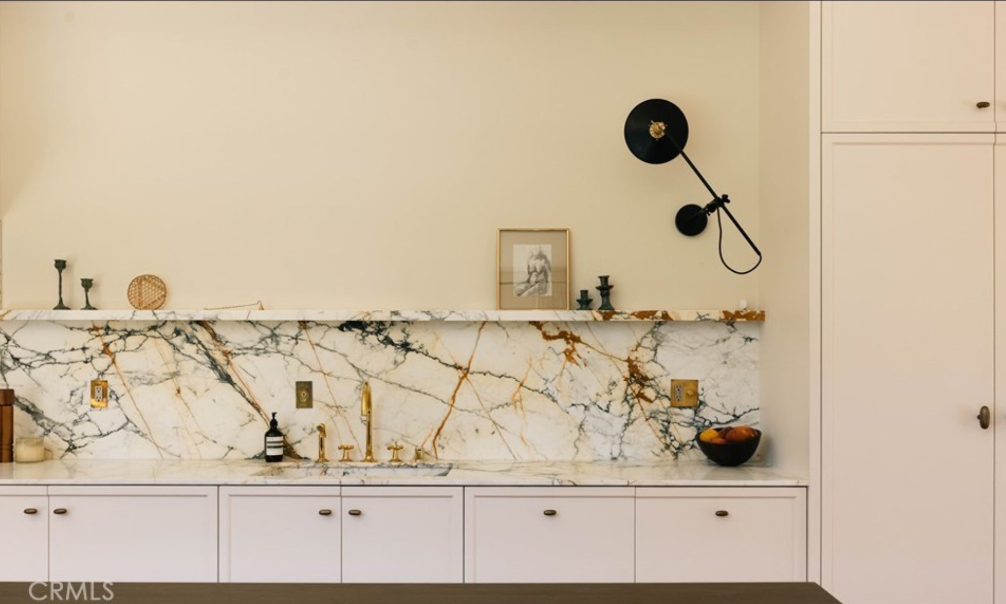 Framed on natural linen mat board with a slim gold metal frame, ready to hang.