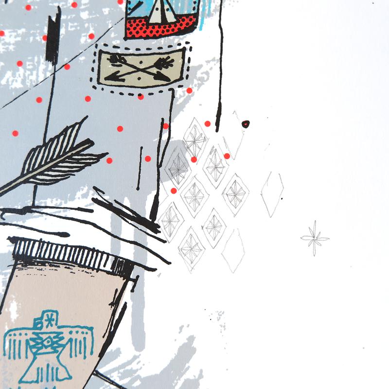 Serigrafía de cinco colores realizada a mano sobre Coventry Rag, papel de archivo 100% algodón con bordes adornados. |