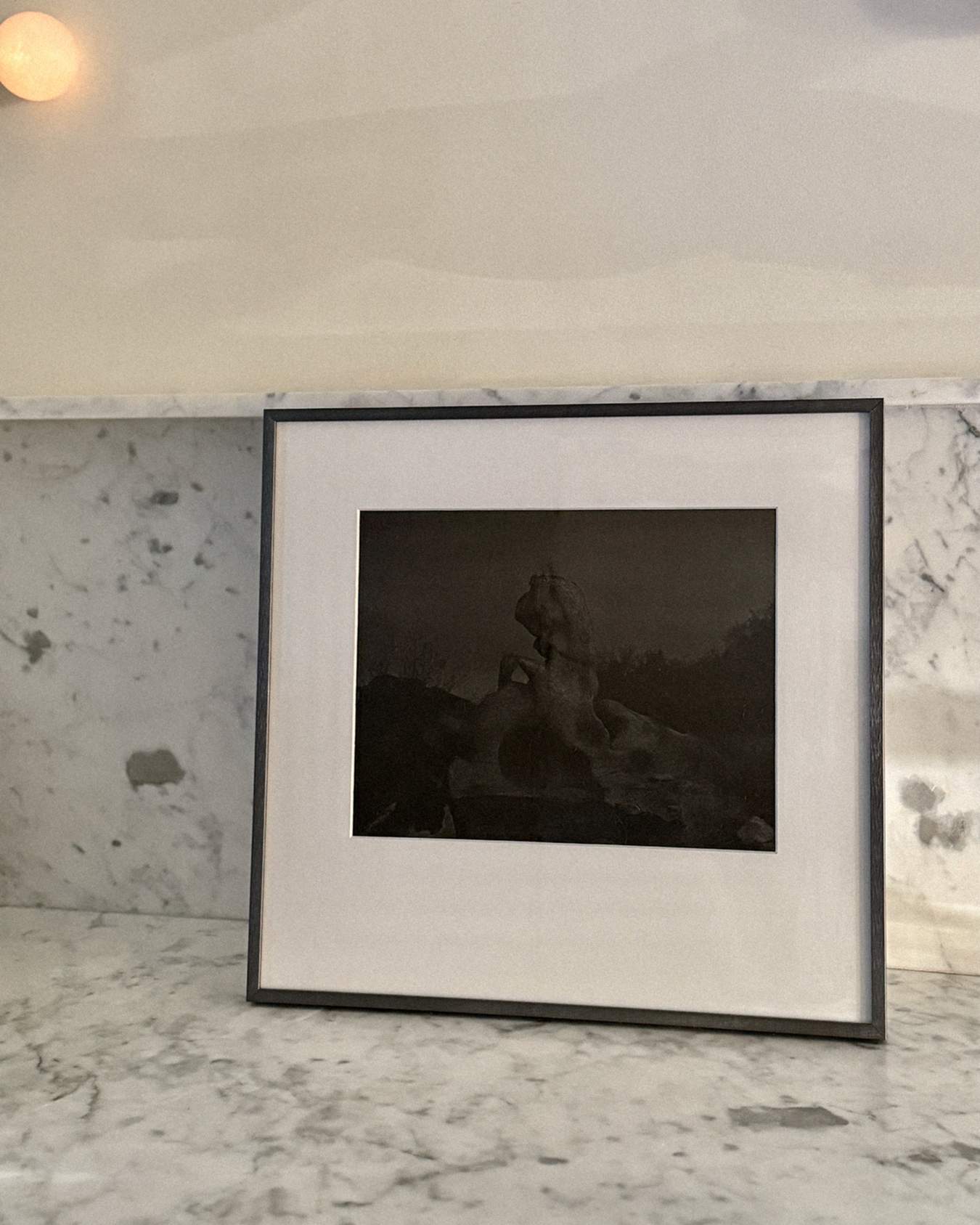 This artwork is custom framed in a thin black metal gallery frame. This frame's Matte Black hue lets your artwork speak for itself, and its slightly recessed plexi adds dimension.