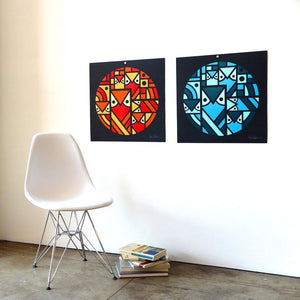 "The 'Parliament' print was, in part, inspired by Pennsylvania Dutch folk art, known as Hex signs...which were created by equal parts painting and design to produce circular signage that was typically used on barns as far back as the early 19th century. The signs became a means of communication, using geometric shapes, symbols, and patterns.