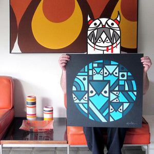 Five-color Silkscreen and high gloss varnish on 100% archival cotton-blend black paper.